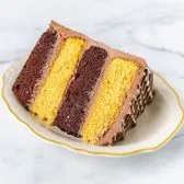Four alternating layers of chocolate and vanilla cake with chocolate buttercream icing.