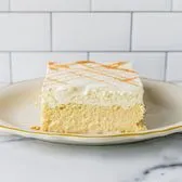 Tres leches in its purest form. Vanilla sponge cake soaked with condensed milk, evaporated milk, and heavy cream, topped with a whipped vanilla icing