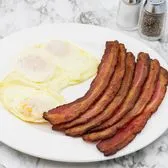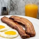 3 slices of our thick sliced bacon with 2 eggs. Served with choice of side