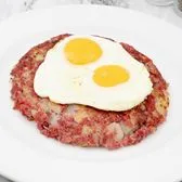 10 oz. Corned beef, potato and onion Hash and 2 eggs. Served with choice of side.