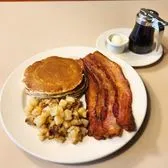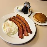 Bacon has never been Thicker or Better! Served with 2 over-easy eggs + choice of side. (Try our delicious old-fashioned Buttermilk Pancakes)