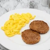 2 sausage patties and 2 eggs. Served with choice of side.