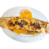 1 of our crepes filled with cranberry-orange sour cream, then topped with warm cranberry-tropical syrup and powdered sugar.