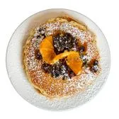 3 of our buttermilk pancakes blended with simmered cranberries and orange zest, then topped with warm cranberry-orange compote and powdered sugar.