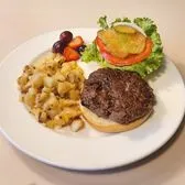 6 oz hamburger patty on a Brioche bun served with toppings and choice of side.