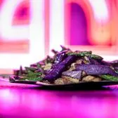 Chinese Eggplant and Greenbeans dish is light and delicious. Lightly stir fried with green beans, eggplant and fresh garlic, this dish can be made regular or spicy and is a take on the Szechuan classic! Pairs amazing with any dish on the menu, great for sharing!