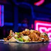 Said to taste like a dream sickle, our orange chicken is served with grilled bell peppers, onion and mandarin oranges! It is topped with a fresh orange slice and dehydrated orange sprinkles. Citrus forward and sweet, this dish is also great spicy! ** Can also be made in vegetarian format with tofu or cauliflower as your protein base!!** All dishes served with rice, vegetable and eggroll with a fortune cookie! Eggroll comes with chicken and cabbage on the inside, can also be made vegetarian!