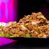Fresh off the Wok, our curry fried rice is incredible! Recommended with Tofu of Cauliflower!