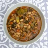 great northern white bean, onion, carrot, celery, spinach, tomato, tomato paste, garlic, olive oil, thyme, oregano, parsley, lemon juice, salt, pepper, vegan, gluten-free