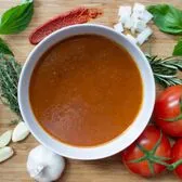 Diced tomatoes, tomato paste, onions, olive oil, salt, pepper, marjoram, thyme, rosemary, roasted garlic, fresh basil, brown sugar, vegan, gluten-free