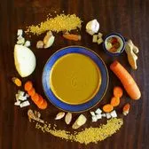 yellow lentils, onion, carrot, coconut oil, garlic, ginger, turmeric, fenugreek, coriander, cumin, red pepper, salt, vegan, gluten-free