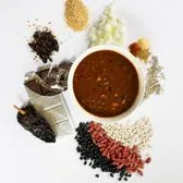 olive oil, great northern beans, red kidney beans, black beans, bulgur wheat, tomato paste, onion, chipotle peppers en adobo, ancho, pasilla, cumin, garlic, sage, chocolate, salt, black pepper, vegan