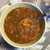 lentils, onion, carrot, celery, garlic, tomato, dry mustard, tarragon, basil, wheat-free soy sauce, salt, pepper, bay leaves, vegan, gluten-free