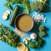 onion, zucchini, kale, broccoli, garlic, cilantro, parsley, lemon juice, coconut oil, salt, pepper, vegan, gluten-free