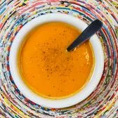 carrots, ginger, lemon juice, olive oil, onions, brown rice flour, salt, sambal olek chili sauce, tamari soy sauce, sweet potatoes, sesame oil, vegan, gluten-free