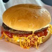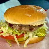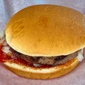 Charcoal grilled hamburger with special sauce, hickory sauce, grated cheese and onions.
