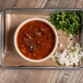 Our soup of beans with chorizo base and mix of meats and veggies and small amount of chiles in vinagre