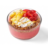Dragon fruit base, pineapple, strawberries, banana, coconut, granola, chia seeds & honey drizzle.