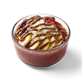 Bahama mama™ base (with coconut, strawberries, pineapple & white chocolate) topped with granola, pineapple & strawberries, coconut, chia seeds & honey drizzle.