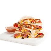Grilled chicken, black beans, roasted red pepper & onion, roasted tomato salsa, queso blanco, Cheddar, smoked cheese blend & served with roasted tomato salsa.