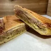 7" half. Pork slow cooked in citrus & spices, deluxe ham, swiss, pickles, spicy mustard. Hot pressed.