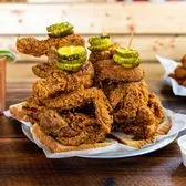 Three Legs, Three Thighs, Three Breasts, and Three Wings with your choice of 1 Heat Level, Bread-N-Butter Pickles, and Large Coleslaw (Additional fees may apply for substituted sides)
