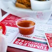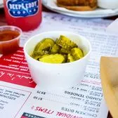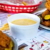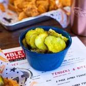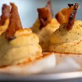 Creamy and zesty Creole styled single Deviled Egg with Candied Bacon