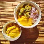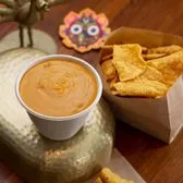 locally made corn chips with our awesome house-made organic queso dip... nut-free, soy free and gluten free! regular 1-3 ppl large 3-6 people