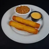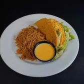 1 piece enchilada (beef, chicken, cheese) served with rice and 2 oz queso.