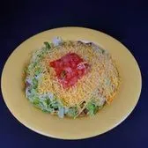 With choice of beef (bf) or chicken (sh), served with pinto beans and topped with lettuce, tomatoes and cheese.
