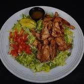 Lettuce topped with 1/2 lb of beef, chicken fajita, or grilled shrimp, topped with tomatoes and avocado slices.