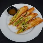 4 piece quesadilla rolls, with bell peppers, avocado, pico de gallo and Monterrey jack cheese fried or baked in a flour tortilla.