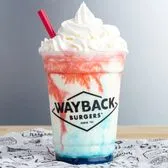 A festive hand-dipped vanilla shake swirled with blue raspberry and pomegranate flavors, topped with whipped cream.