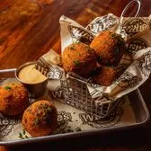Two massive catfish filets, served with cocktail and tartar sauce. Served with a personal chips and individual dip, choice of side, and choice of drink.