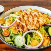 Grilled chicken, romaine lettuce, diced red bell peppers, black-eyed peas, diced tomatoes, & cucumbers, and shredded cheese. Served with Citrus Vinaigrette.