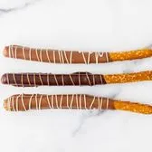 2 crunchy Pretzel Rod enrobed in creamy caramel and drenched in premium milk & dark chocolate. (orders of 12 or more require 24 hour notice)