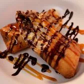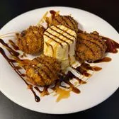 Waffle stuffed with crispy bacon, surrounded on each side by crisp cookie, batter dipped, sprinkled with bacon and fried until golden brown. Served with a scoop of ice cream.