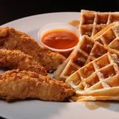 They say it couldn't be done. The bar was too high, they said. But Wing Daddy's beat the odds and broke the fork speed record for comfort food. Thick and delicious Belgian waffles, 3 strips of our boneless hand breaded chicken, a sprinkling of powdered sugar, served with honey hot sauce and maple syrup. Pour it on, start the addiction...