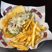 A cheesy classic! Thinly sliced rib-eye steak, sauteed onions, peppers, mushrooms, and melted provolone. Served on a french roll.