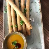 3 eggrolls with ground chicken thigh, shiitake mushrooms, taro root, served with sour plum sauce