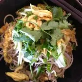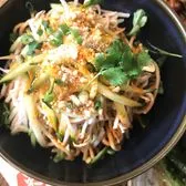 Wheat noodles with a savory combination of minced beef and fermented mustard greens in a savory beef stock, topped with mung bean sprouts, julienned cucumber and chili oil