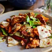 a classic Sichuan favorite! Tender pieces of organic chicken thigh, wok-tossed with fermented chili bean paste, house made chili oil, local bell peppers, crispy fried peanuts