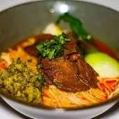 Red hot chili oil, black vinegar, bok choy, pickled veggie, bean sprout, cilantro (Choice of Protein)