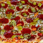 The Hottie walked so the Haughty could run the game. All-beef pepperoni, black peppers, crushed red peppers., Zalat peppers, and jalapeños. Spicy, bold, and not here to be humble