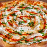 Roasted chicken covered with infinity swirls of hot buffalo sauce, blue cheese ranch, and mozzarella cheese. A gameday favorite, but on pizza