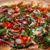Your favorite pho-nomenal flavors on a pizza! Chicken, red bell peppers, red onions, Hoisin and Sriracha swirls, garnished with fresh basil and cilantro. Oh—and don’t sleep on the side of lime. It's the best of both worlds - no chopsticks required.