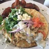 Chicken breast, grilled pita, onions, tomatoes, feta, arugula, onions, Ziziki's sauce, potatoes