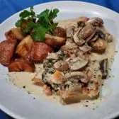 Pan-seared herbed, chicken breast, garlic, mushrooms, potatoes